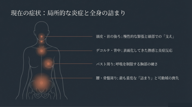 今回の方は、頭から背中にかけて痒みがあり、場合によってはちょっとした傷があるという状態です。何度か来院されている方ですが、なぜこうなってしまったのか、結論から言うと「疲労」です。