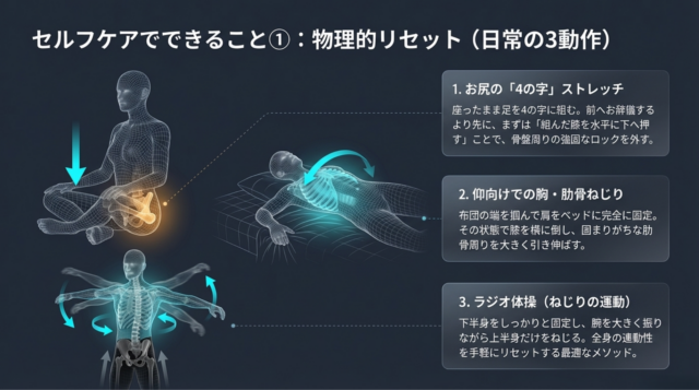 骨盤を緩めて腕の緊張を解くセルフケア